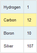 بنابراین تعیین نسبت اتم ها در هر ماده مرکب مهم است. فرض کنید لیستی از وزن های نسبی اتم ها را تهیه کرده ایم: