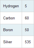 به دلیل این که هیدروژن سبک ترین عنصر است، بیایید وزن آن را 1 در نظر بگیریم و وزن بقیه عناصر را با توجه به وزن آن یک پنجم کنیم: